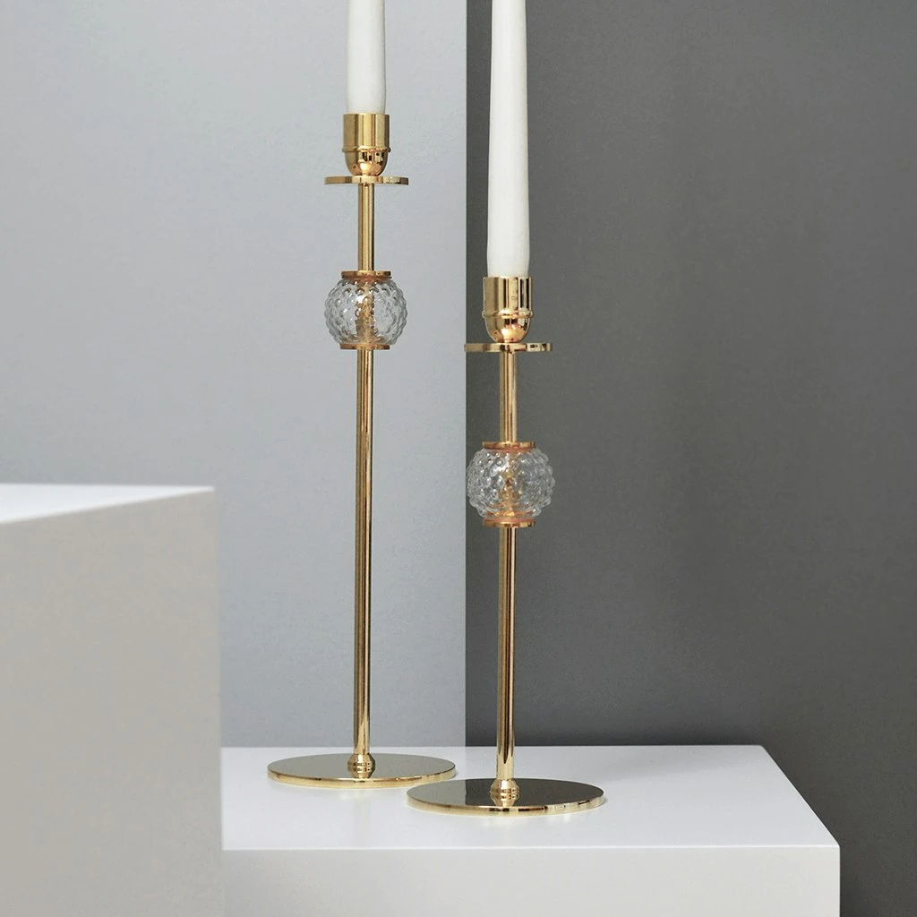 Beautiful solid brass candlestick, handmade with a decorative and elegant glass ball. Hilke is luxurious Swedish design with its roots in Italy – “Alba” is Italian for sunrise.