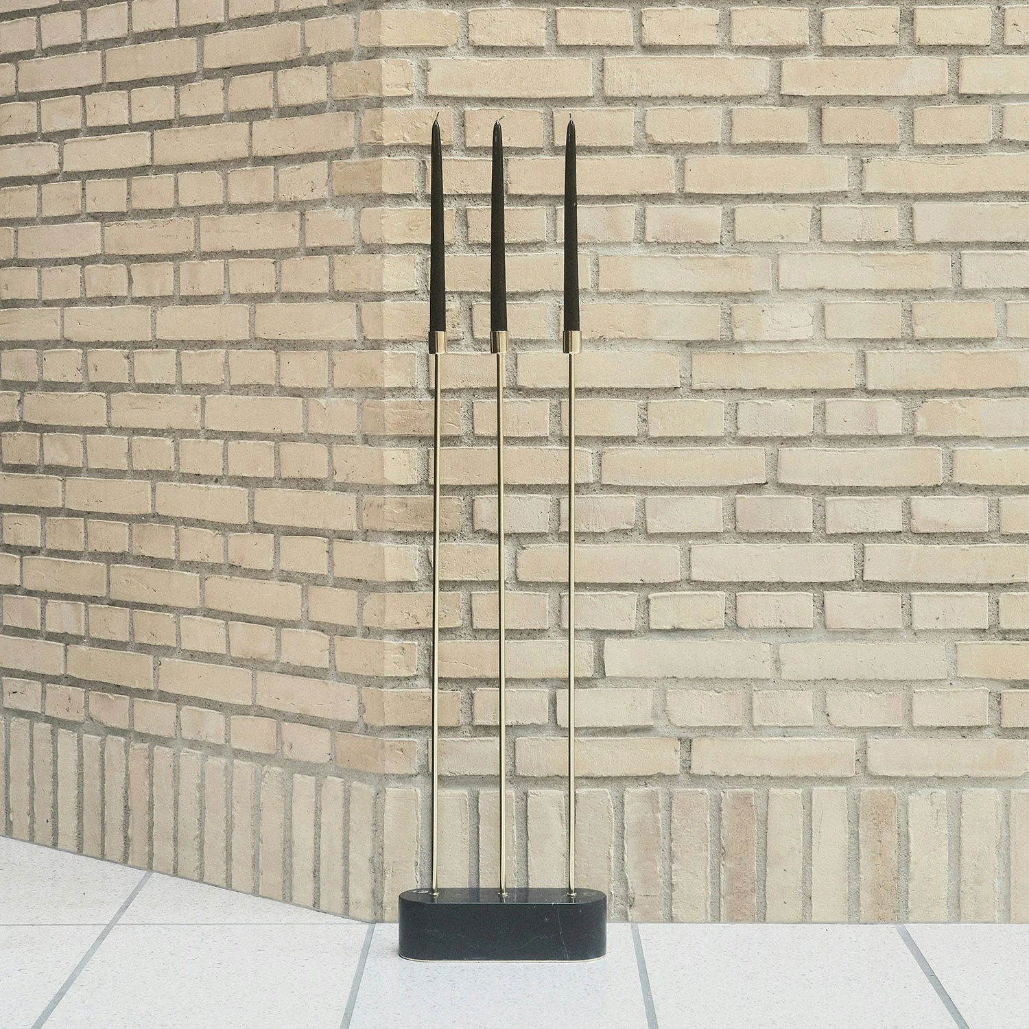 Aytm Grasil Floor Candle Holder is available in two different colour combinations, one black and one black with brass-plated iron arms. The heavy base of marble makes it stand firmly on the floor without risk of tip over.
