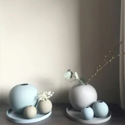 The vase by Cooee Design has an elegant design in ceramic with a round shape perfect for cut flowers and branches. Choose between different colours.