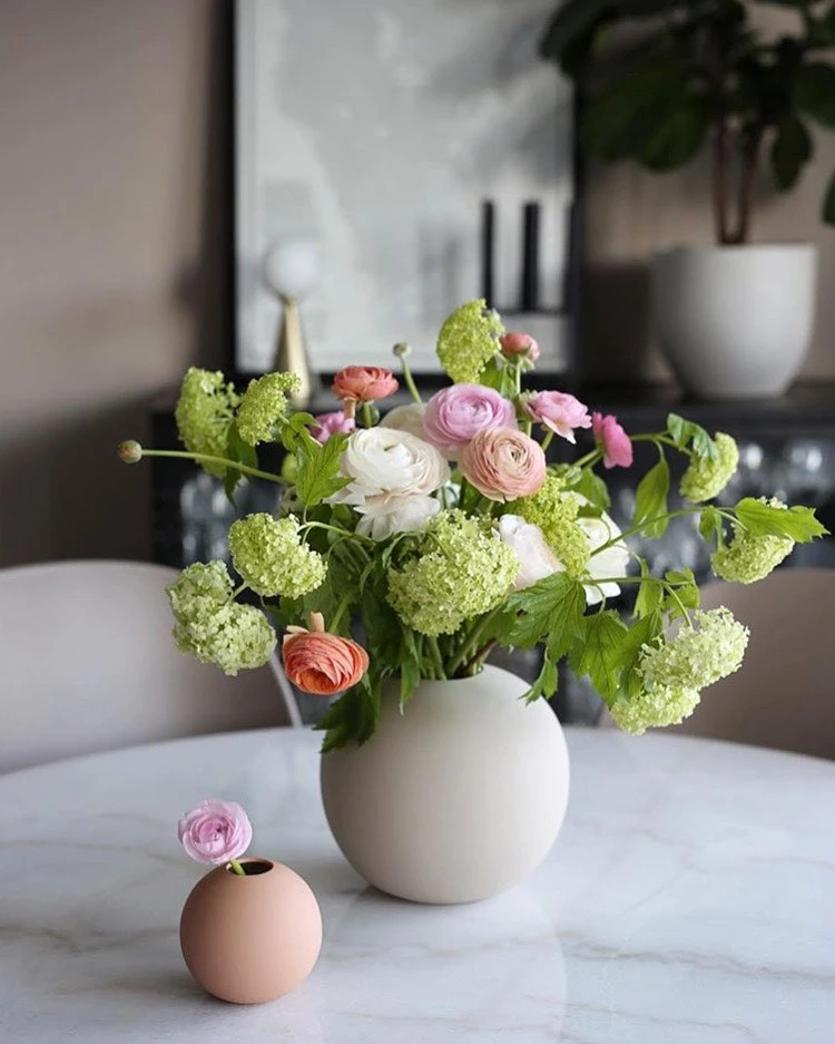 The vase by Cooee Design has an elegant design in ceramic with a round shape perfect for cut flowers and branches. Choose between different colours.