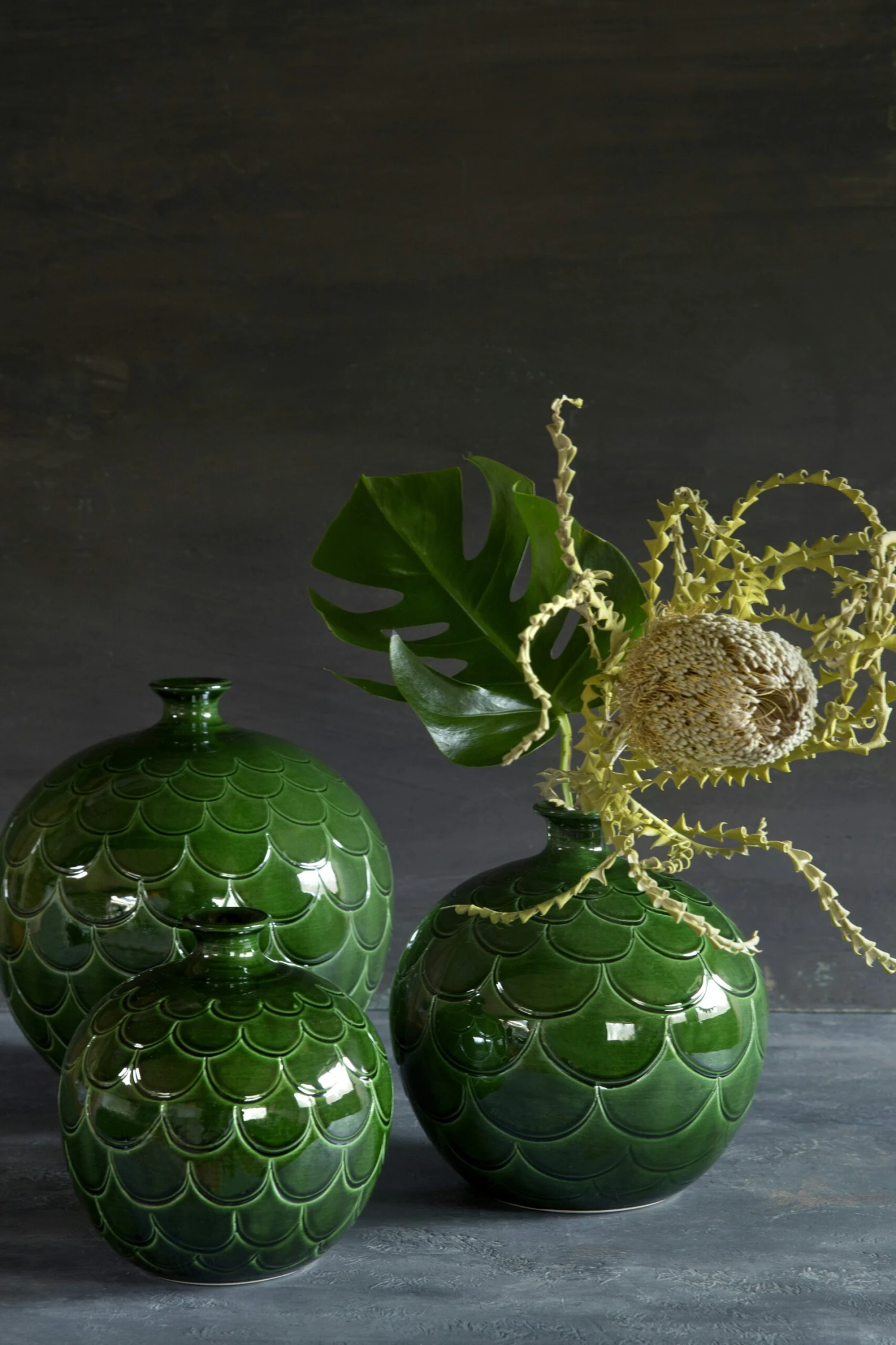 If you experience love at first sight when you see the Misty vase you are not alone. The Misty series is Bergs Potter’s latest addition to the glazed vase family and leaves no one unaffected. The emerald green glaze combined with the beautiful structure is incredibly beautiful. The series has four different shapes and sizes. The round-shaped vases are offered in three different sizes, while the cone-shaped vase is only available in one size.