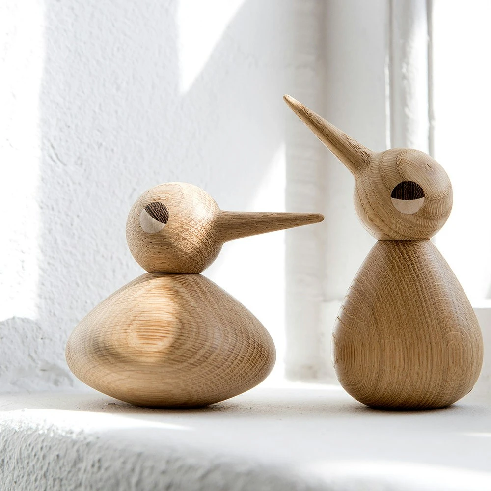 Bird Large from ArchitectMade. This bird is a timeless classic designed by Kristian Vedel. It is made of high quality oak and handmade in a small blacksmith in Denmark. You can turn the head to create different moods, you choose whether the expression is happpy, sad or curious. It’s also possible to turn over the body. Is nice to combine with other birds from the Bird series.