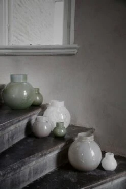Round glass vase with a shiny finish.