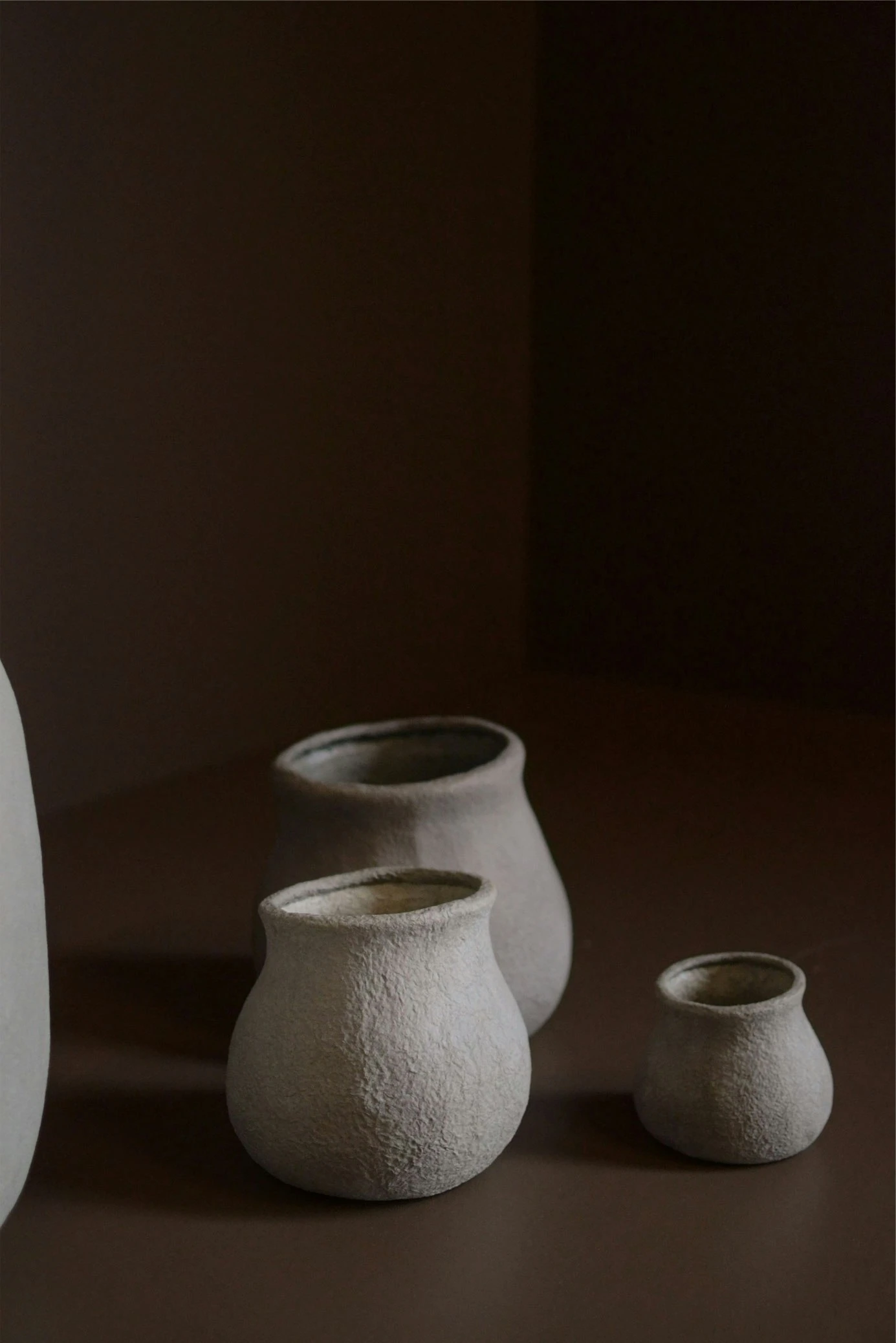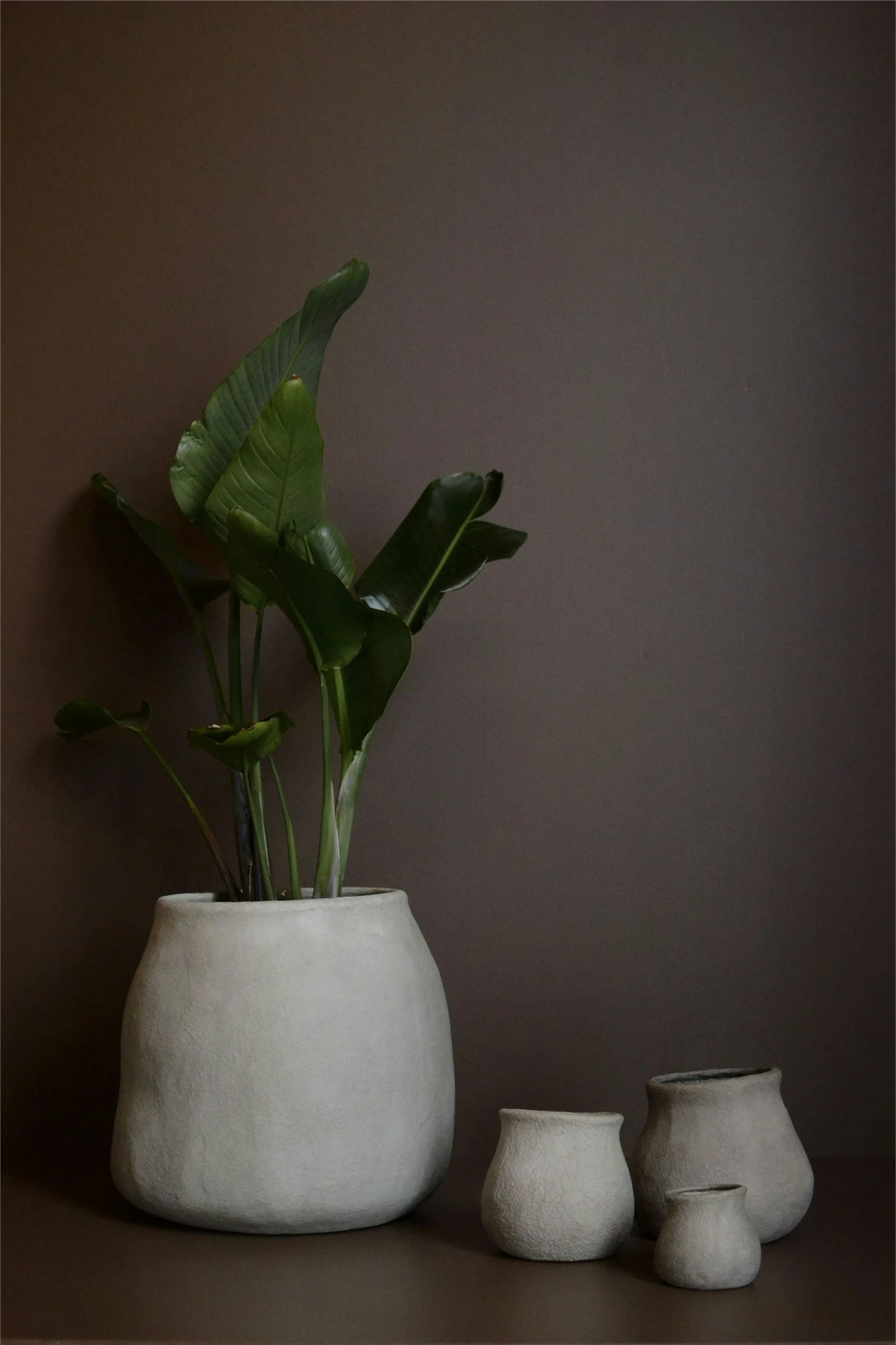 Paper pot or vase from DBKD has an unique design. Paper is made of papier mâché, in a way that makes the pot waterproof. The lightweight paper and the irregular shape create a beautiful contrast to your flowers and green plants.
