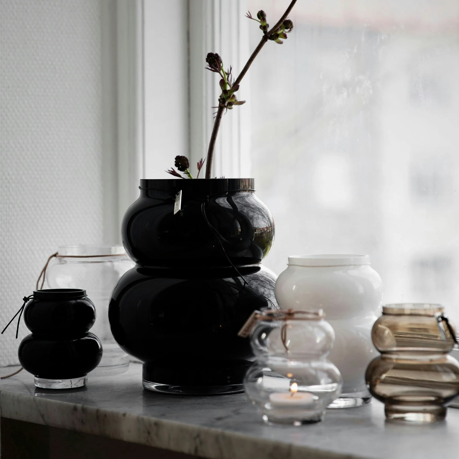 – The glass vase comes in different sizes.