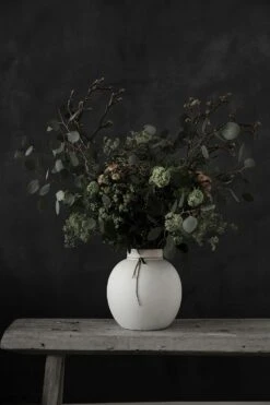 Stoneware Vase from Ernst Kirchsteiger. Fresh cut flowers creates life and joy in every home. This stoneware vase opens up endless possibilities for creating beautiful flower arrangements. The vase has a leather strap tied around that gives an elegant and vibrant expression. The vase is available in three sizes and four colours.