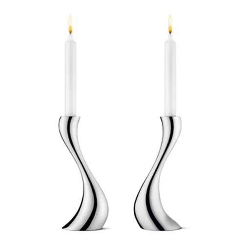 Cobra is a classic candle holder with an elegant design. The curves give a sense of movement. The shape has been partly inspired by melting wax and the curves of the candle holder resemble a candle holder that has begun to melt. Its shiny surface combined with the design creates a dramatic and inspiring expression. These candle holders are available in several sizes and are sold in 2-pack. Candles are sold separately.