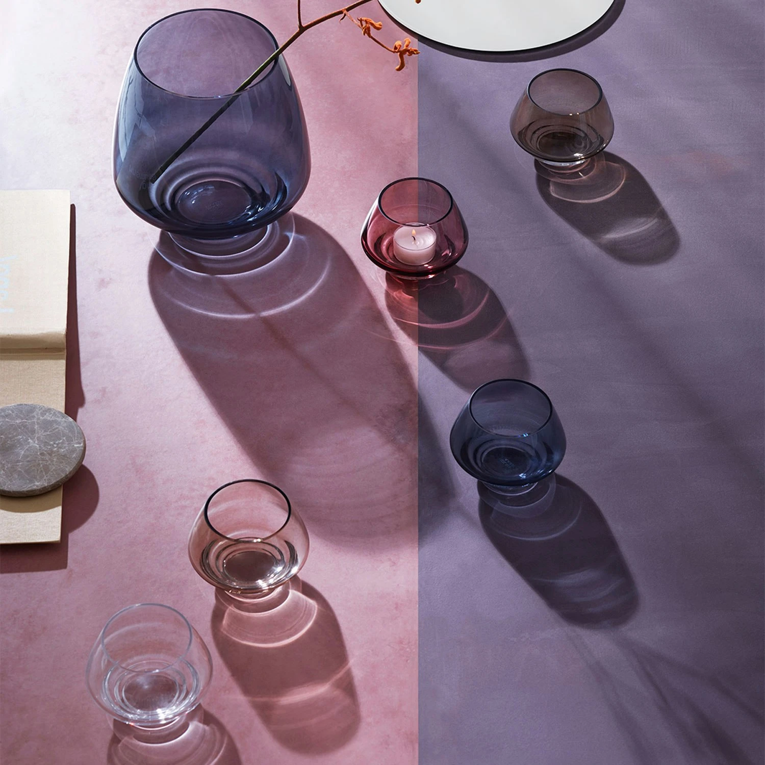 The candle holder Flow from Holmegaard has a practical design so that it can be used both as a candle holder and a vase. It is made of blue mouth-blown glass and casts magnificent shadows, that looks like ripples. The inspiration for Flow comes from liquid material that is in constant motion. Is not dishwasher safe.