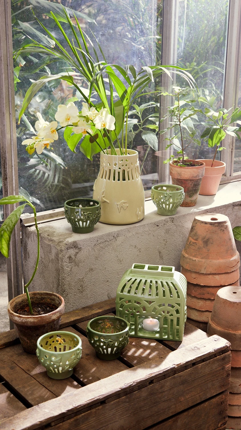 The vase by Kähler has a conservatory, inspired design in ceramic perfect for small bouquets or twigs. Due to the carefully handcrafted design, every product is unique and smaller variations may occur.