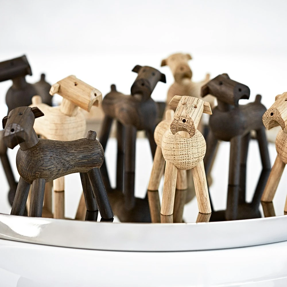 The wooden figure is made of oak and is available in two varieties – untreated oak and smoked oak. The dog in untreated oak has a light colour, while the dog in the smoked oak has a darker colour.