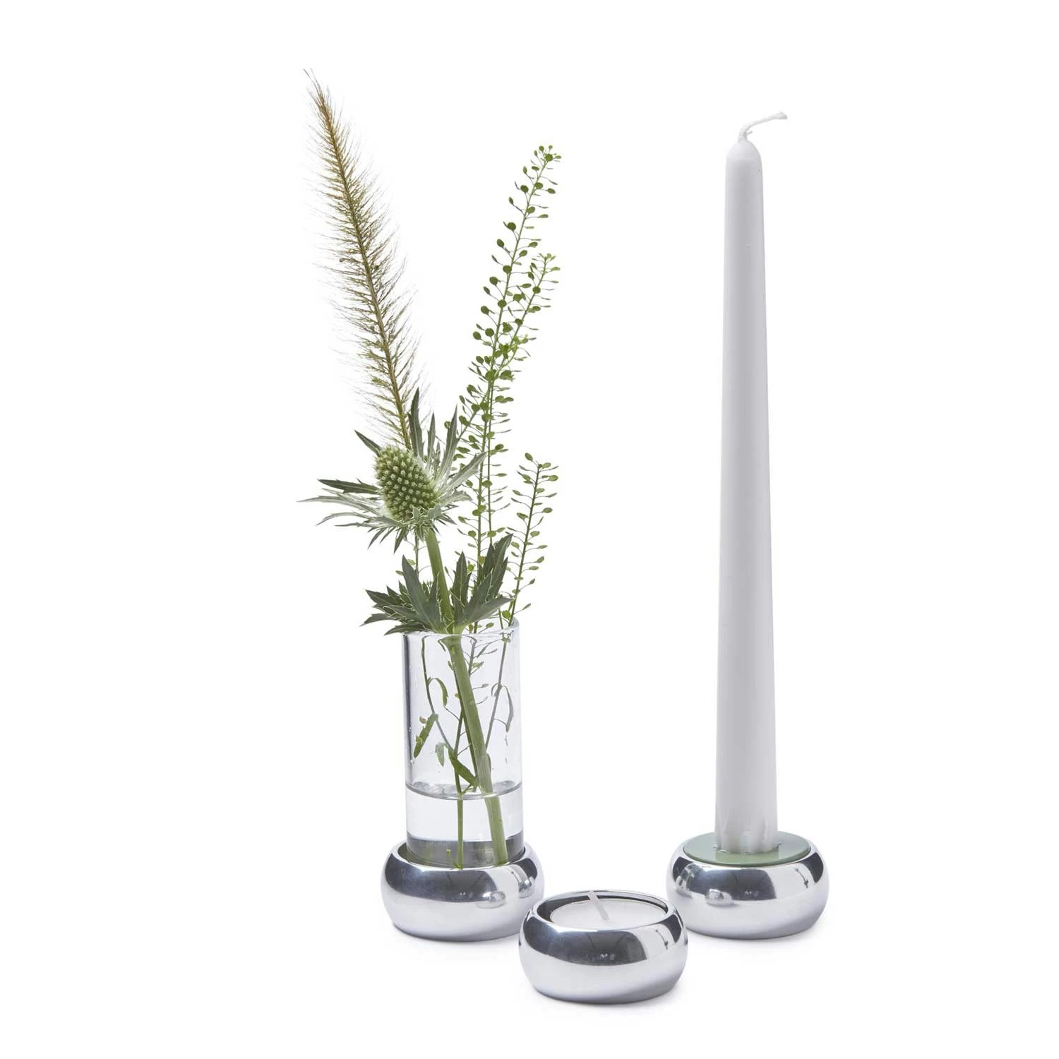 Beautiful Constella from Klong as a gift box. This composition consists of three units, a flower vase, and two different candle holders, one for candlelights and one for a tealight. Constella gift box is, just like the original Constella, available in brass and polished aluminum. The parts in the gift box are separated from each other and are not stuck together as in the classic candle holder.