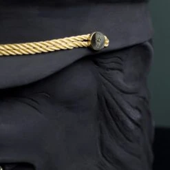 Monkey Face from Garden Glory is an impressive pompous sculptural pot in black painted terracotta. The pot has beautiful details such as a twisted golden cord that is held in place by buttons in brass and a brass tooth. The pot is delivered with a brush and black paint so you can easily improve the finish if necessary as the years go by.