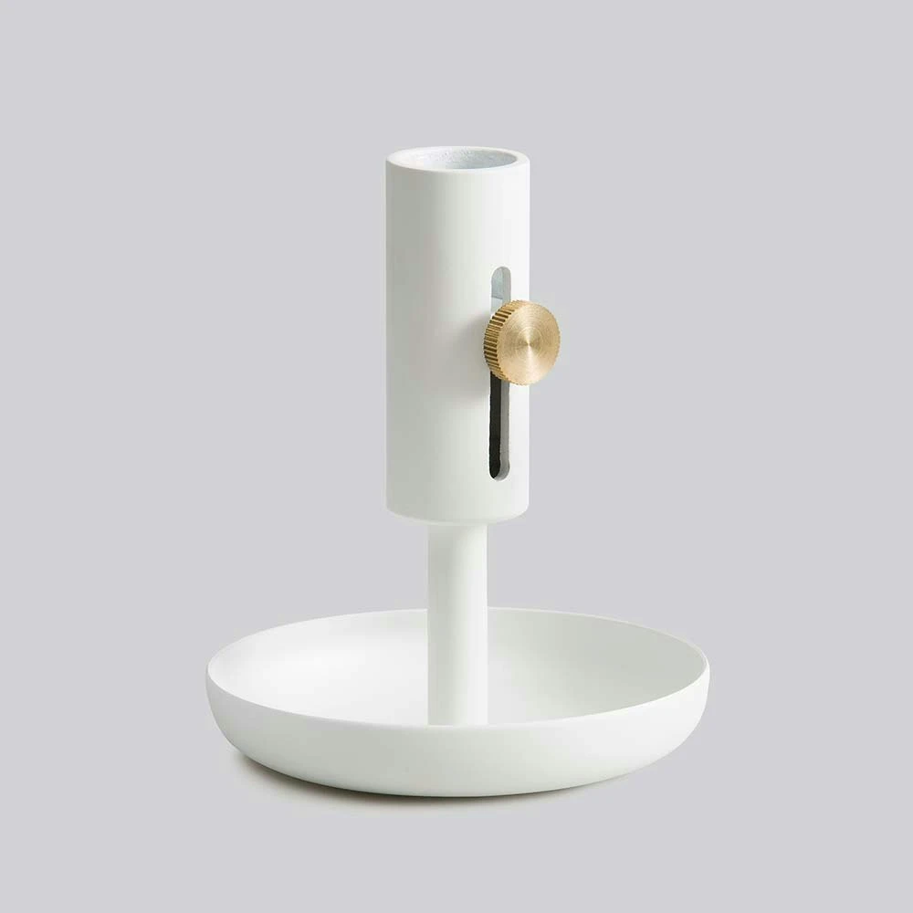 Granny candlestick lights up the interior the old-fashioned way. Crafted in steel and brass.
