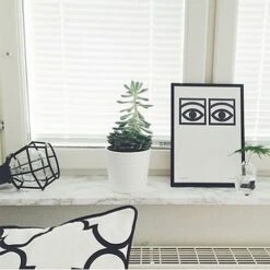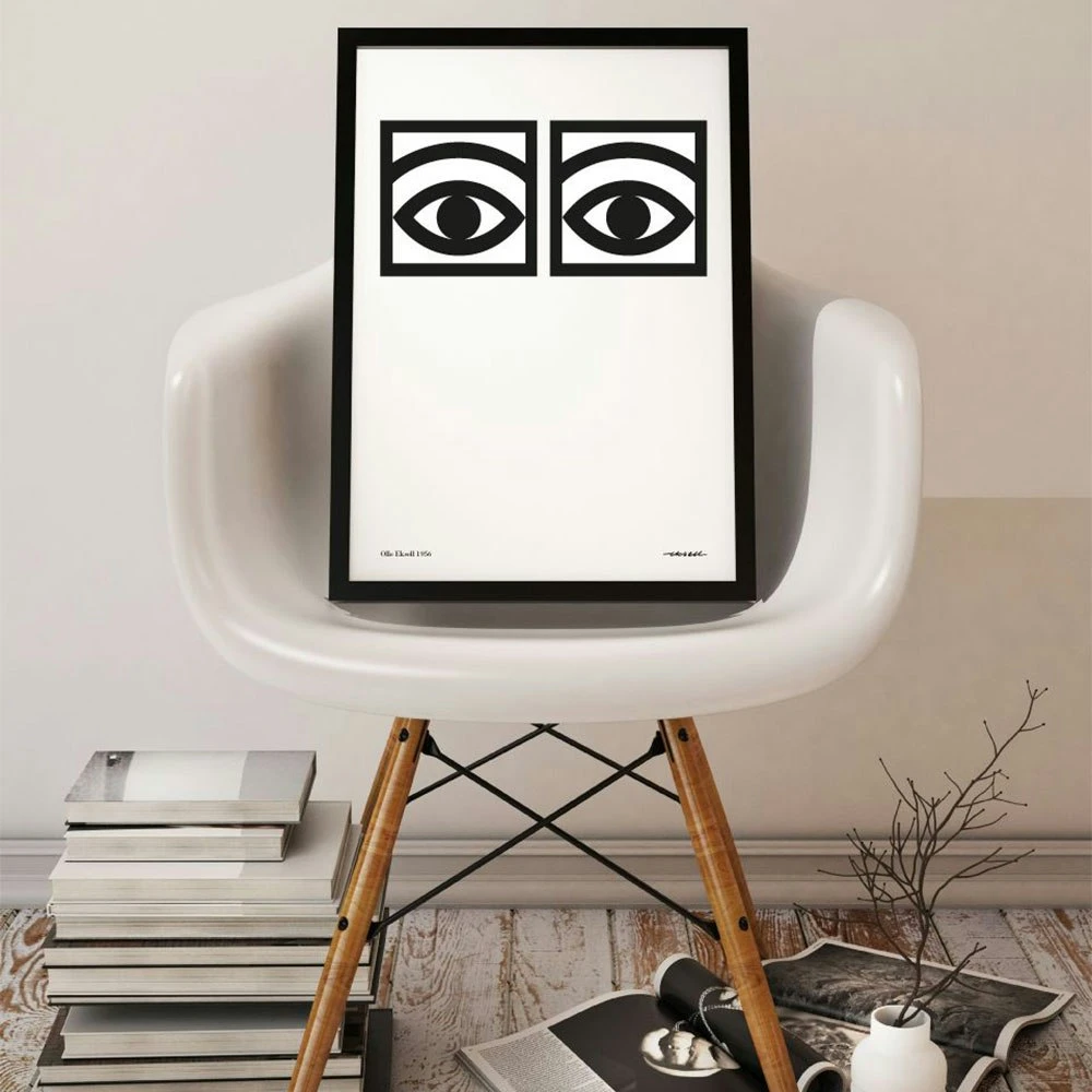 The poster is in black and white, giving a stylish expression and fits in with all possible colour combinations. The famous eyes came when the designer Olle Eksell created Sweden’s first design program for the company Mazetti. After that, they have become a true classic in Swedish design. The poster fits everywhere and gives a modern yet timeless expression.