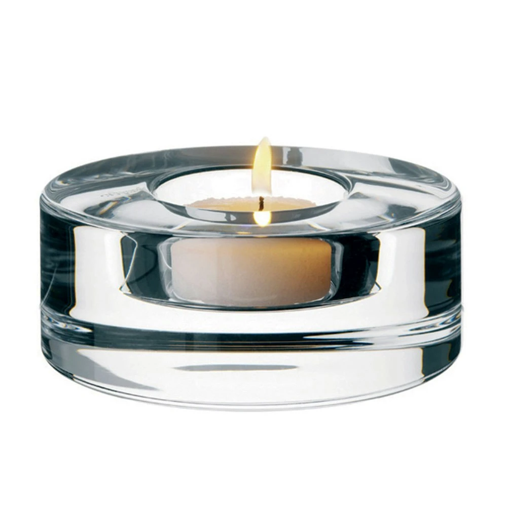 This timeless candle holder is part of the Puck series, which has become a design success and received the Swedish Form Award. The candle holder has a transparent appearance and therefore fits perfectly together different colours and patterns.