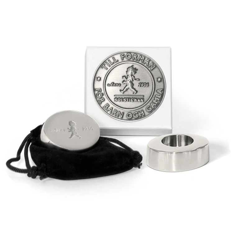 The candle holder is delivered in a velvet bag that is packed in a gift box.