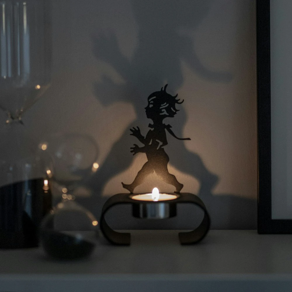 Stylish candle holder from Solstickan Design. The silhouette of the Solstickeboy creates striking effects with the shadow dancing on the wall.