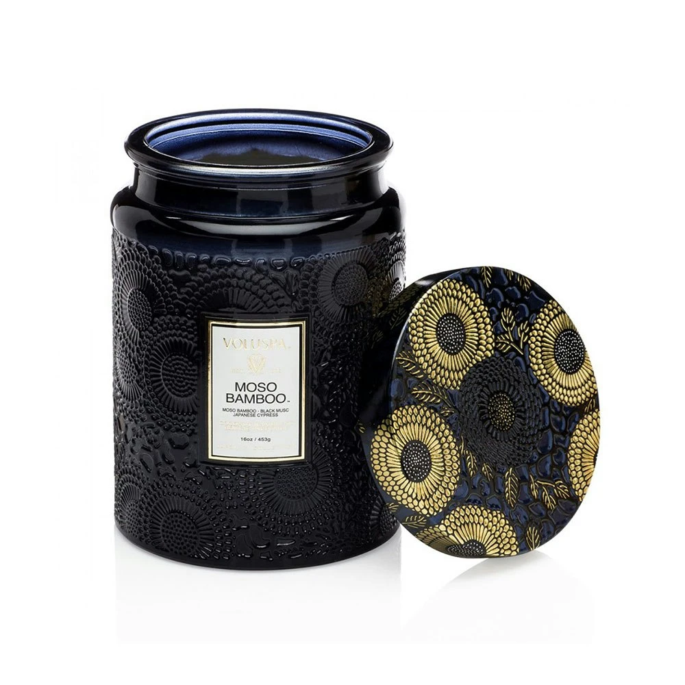 Voluspa Moso Bamboo combines Moso bamboo, black musc and Japanese cypress, creating an alluring, sensual scent. Burn Time: 100 hours. 455 g. Scent Family: green. Ltd.
